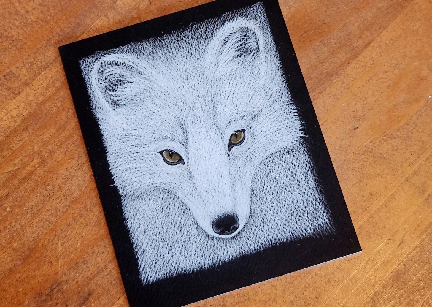 We’ll draw the keen, intelligent face of an arctic fox in colored pencil. There are two videos and one printable photo reference: