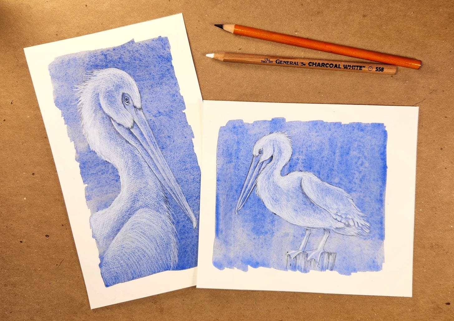 We’ll use charcoal pencils to draw these distinctive birds. There are four videos and four printable pdf pages.